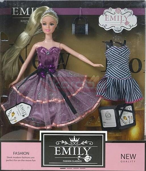 Lalka 29cm w sukni wieczorowej, z sukienką i torebką; 32,5x28x6cm, W/B