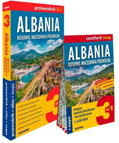 Największe atrakcje Albanii, Kosowa i Macedonii Północnej w jednym tomie. Osmańskie twierdze, zdobione freskami cerkwie, zabytkowe meczety, wszechobecne schrony. Urokliwe zaułki Gjirokastry, Beratu, Prizrenu i Ochrydy. Echa starożytności w Butrincie, Apollonii i Durrs. Śródziemnomorskie słońce i plaże Adriatyku, tętniące życiem kurorty na Riwierze Albańskiej. Pyszne ryby i owoce morza, doskonała jagnięcina pod każdą postacią i oczywiście kawa, której aromat spowija uliczki bałkańskich miejscowości. Te i inne atrakcje Albanii, Kosowa i Macedonii Północnej pomoże odkryć przewodnik ExpressMap z serii 3w1. Nowa jakość wśród przewodników - wyjątkowe połączenie barwnych opisów i szczegółowych map: mapy tras zwiedzania przedstawiające lokalizację wszystkich opisywanych miejsc, bogata treść - historia i kultura, przyroda i tradycje, ciekawostki i anegdoty, przydatne informacje praktyczne - dni i godziny otwarcia obiektów, ceny biletów, transport publiczny, noclegi, pogoda, liczne informacje o lokalnej kuchni, przejrzysty układ graficzny umożliwiający łatwe wyszukiwanie informacji, szczegółowy atlas Albanii, Kosowa i Macedonii Północnej, w którym zaznaczono miejsca opisane w przewodniku, dwustronnie laminowana mapa dołączona do przewodnika. Powyższy opis pochodzi o wydawcy.