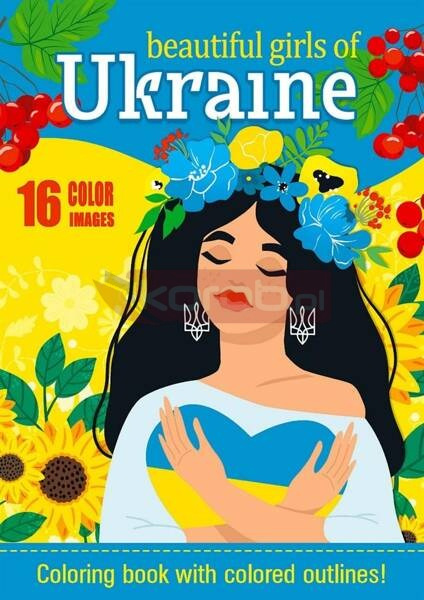Kolorowanka dla dzieci z motywami ukraińskimi. W środku 16 obrazków, które czekają, aby nabrać kolorów. Wyprodukowana na Ukrainie.
