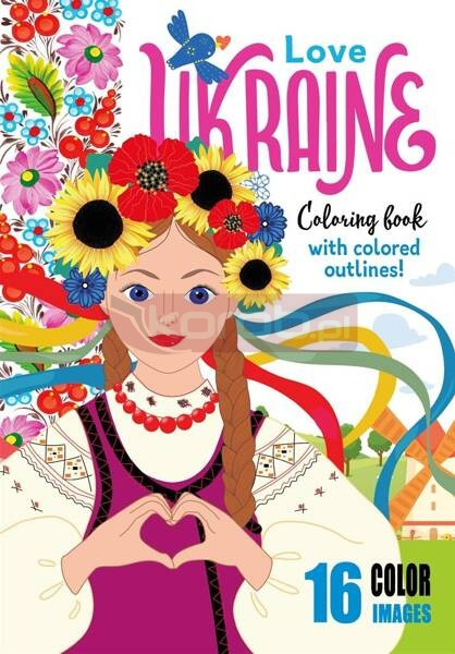 Kolorowanka dla dzieci z motywami ukraińskimi. W środku 16 obrazków, które czekają, aby nabrać kolorów. Wyprodukowana na Ukrainie.