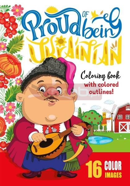 Kolorowanka dla dzieci z motywami ukraińskimi. W środku 16 obrazków, które czekają, aby nabrać kolorów. Wyprodukowana na Ukrainie.