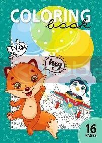 Kolorowanka dla dzieci ze zwierzakami. W środku 16 obrazków do pokolorowania lub rozwiązania zagadek. Wyprodukowana na Ukrainie.