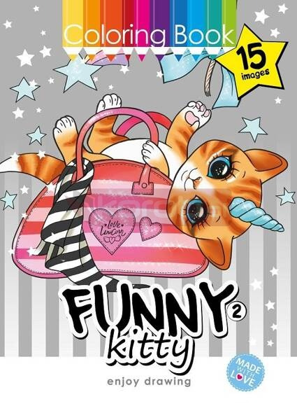 Kolorowanka dla dzieci w której znajduje się 15 obrazków z kotkami, które tylko czekają żeby nabrać kolorów. Wyprodukowana na Ukrainie.