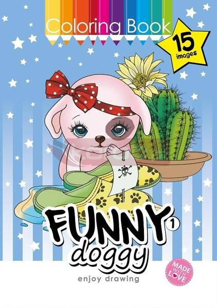 Kolorowanka dla dzieci w której znajduje się 15 obrazków z pieskami, które tylko czekają żeby nabrać kolorów. Wyprodukowana na Ukrainie.