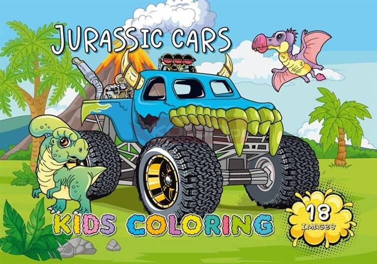 Kolorowanka dla dzieci. Na każdym z 18 obrazków znajduje się obrazek z monster truckiem, który tylko czeka żeby nabrać kolorów. Wyprodukowana na Ukrainie.