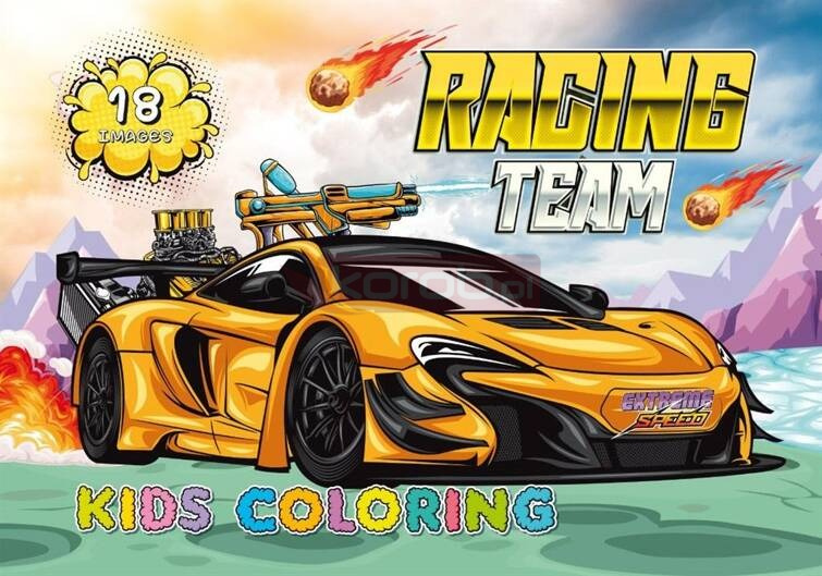 Kolorowanka A4 18 obrazków Wyścigi Samochody Kolorowanka dla dzieci. Na każdym z 18 obrazków znajduje się obrazek z monster truckiem, który tylko czeka żeby nabrać kolorów. Wyprodukowana na Ukrainie.