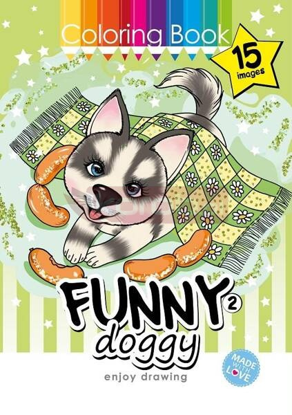 Kolorowanka dla dzieci w której znajduje się 15 obrazków z pieskami, które tylko czekają żeby nabrać kolorów. Wyprodukowana na Ukrainie.