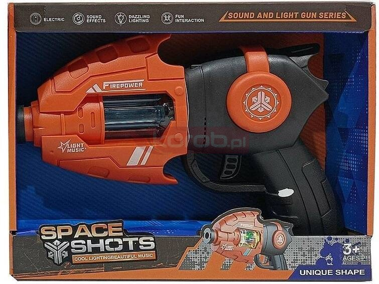 Pistolet na baterie, światło, dźwięk; 24,5x18,5x4cm, W/B