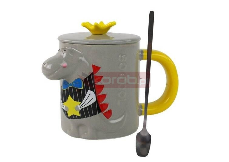 Ten kubek łączy w sobie funkcjonalność (przykrywka, łyżeczka) z estetyką (przestrzenny motyw dinozaura). To nie tylko pojemnik na napój, ale również element dekoracyjny, który może cieszyć zarówno dzieci, jak i dorosłych.