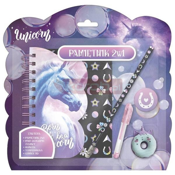 Pamiętnik z kłódką 2w1 + zestaw przyborów Jednorożec 15.