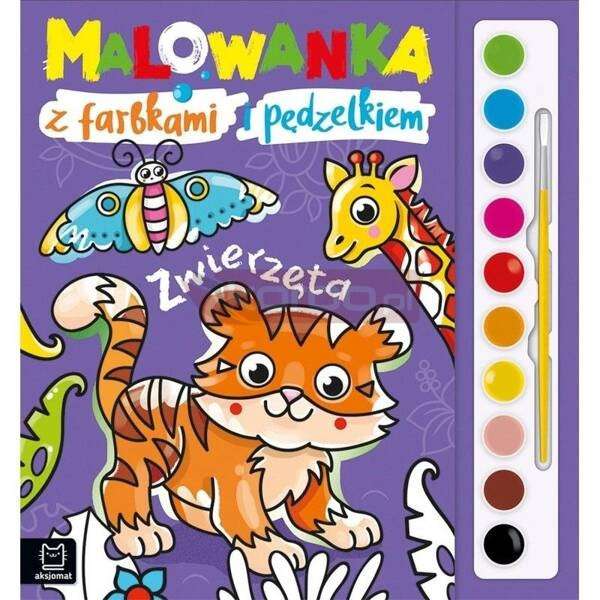 Piękne obrazki, pędzelek i zestaw farbek to propozycja dla małych artystów. Zapraszamy na spotkanie ze zwierzętami poznaj każde z nich z osobna. Są tu: papuga, delfin, flaming, gąsieniczka, słoniem, koniki morskie, tygrys, ośmiornica, małpki, rzekotka, motyle egzotyczne oraz wąż. Z kim bawi się delfin Florek? Jak spędza czas rzekotka Iga? Dlaczego żyrafa ma taką długą szyję? Gdzie skaczą małpki Kika i Fredo? Lubiana przez dzieci tematyka rysunków i ciekawe historyjki o zwierzętach zachęcą dzieci do kolorowania. Malowanki ze zwierzętami to świetna zabawa kolorami, która rozwinie kreatywność i sprawność manualną dziecka. Pozwoli również ćwiczyć cierpliwość i koncentrację. Dołączony do książeczki zestaw 10 kolorów farbek i pędzelek pozwala dziecku rozpocząć zabawę gdzie i kiedy chce wystarczy tylko odrobina wody. Baw się kolorami razem ze zwierzętami!