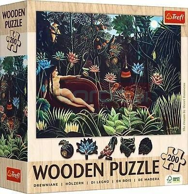 WOODEN PUZZLE 200 elementów przedstawiające znany na całym świecie obraz Sen - Henri Rousseau.