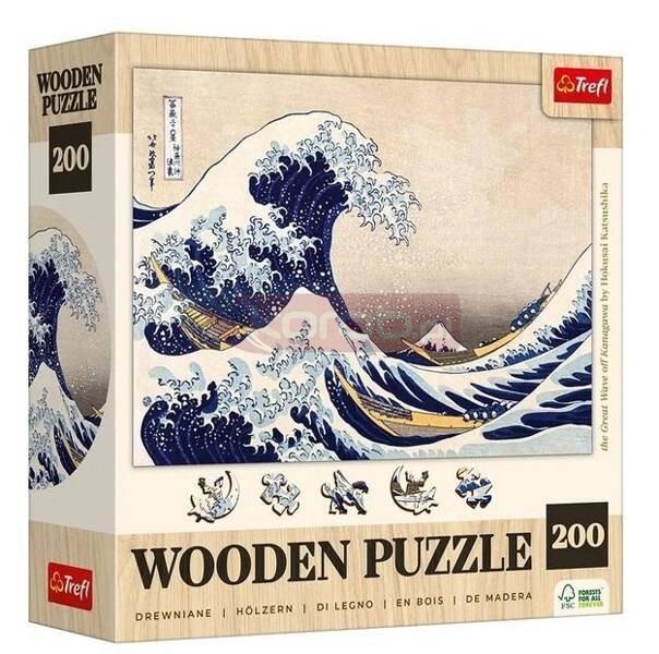 WOODEN PUZZLE 200 elementów przedstawiające znany na całym świecie obraz Wielka Fala w Kanagawie - Hokusai Katsushika.