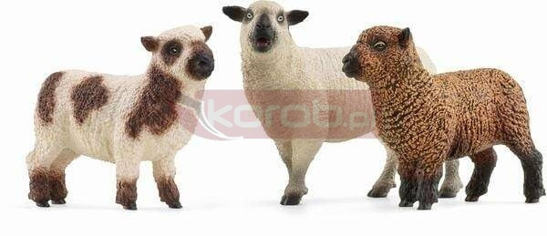 Zawartość: 1x Owca Babydoll Southdown brązowa, 1x Owca Babydoll Southdown w cętki, 1x Owca Hampshire