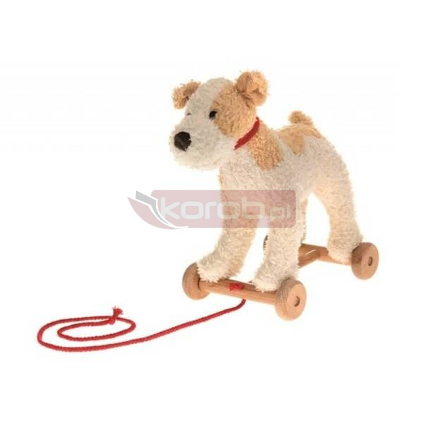 Przesympatyczny, kudłaty piesek na 4 drewnianych kółkach będzie towarzyszem podczas pierwszych spacerków Twojego dziecka.