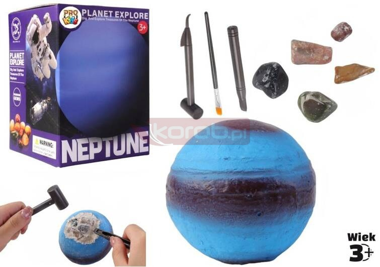 Odkryj kosmiczne skarby z zestawem "Wykopaliska Minerałów Planeta"! W środku gipsowej planety ukryty jest magiczny kryształ, który czeka, byś go odkrył. Używając dołączonych narzędzi - pędzla, dłuta i młotka - oraz kierując się instrukcjami, dzieci powyżej 4. roku życia mogą wydobyć minerał, ucząc się przy tym o kosmosie. Każda planeta kryje inny kamień, a dołączony katalog pozwoli zgłębić tajemnice minerałów. Bezpieczna, edukacyjna i kreatywna zabawa, nie wymagająca baterii, z realistycznymi kolorami planet. Idealna dla małych kosmicznych odkrywców!