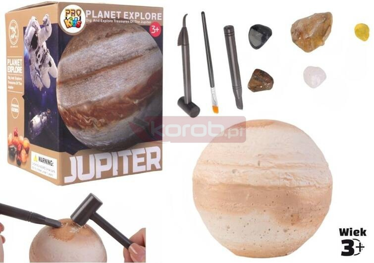 Odkryj kosmiczne skarby z zestawem "Wykopaliska Minerałów Planeta"! W środku gipsowej planety ukryty jest magiczny kryształ, który czeka, byś go odkrył. Używając dołączonych narzędzi - pędzla, dłuta i młotka - oraz kierując się instrukcjami, dzieci powyżej 4. roku życia mogą wydobyć minerał, ucząc się przy tym o kosmosie. Każda planeta kryje inny kamień, a dołączony katalog pozwoli zgłębić tajemnice minerałów. Bezpieczna, edukacyjna i kreatywna zabawa, nie wymagająca baterii, z realistycznymi kolorami planet. Idealna dla małych kosmicznych odkrywców!