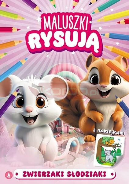 Poznaj wesołe zabawki, sympatyczne zwierzaki, piękne królewny i baśniowe postaci. W serii MALUSZKI RYSUJĄ gruba kreska pomoże Ci w kolorowaniu, a barwne naklejki ozdobią każdy Twój obrazek. Wszystko po to, żeby bawić się na sto dwa! Co się dzieje w mysiej norce? Gdzie miś szuka smakołyku? Kto mieszka pod wodą, na łące, a kto na drzewie? Poznaj wszystkie słodkie zwierzaki!