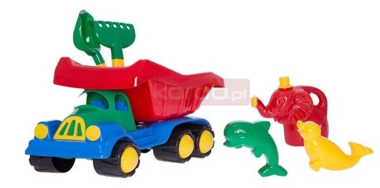 Samochód duży z dodatkami do piasku i konewką