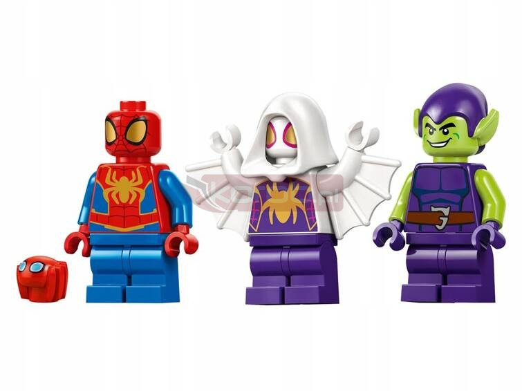 Ten zestaw z serialu Disney+ Spidey i super-kumple zawiera: minifigurkę Spider-Mana i jego latający spinner z obrotowym śmigłem i podnoszonym kokpitem, minifigurkę Zielonego Goblina i jego szybowiec z dyniowymi pociskami oraz minifigurkę Ghost-Spider z dużą złotą siecią. Jest tu także przyjaciel Spider-Mana, robot Trace-E, morskie akcesoria i uroczy krab. Zestaw zawiera klocek startowy z kokpitem, który ułatwia rozpoczęcie budowania, oraz intuicyjne instrukcje w formie kolorowego, ilustrowanego przewodnika.