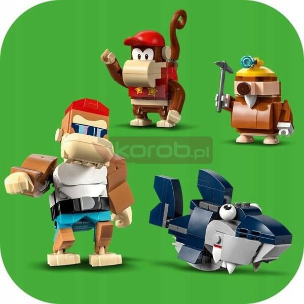 Stwórz legendarny poziom Donkey Konga™ w zbudowanym z klocków świecie LEGO® Super Mario™ dzięki zestawowi Przejażdżka wagonikiem Diddy Konga — zestaw rozszerzający (71425). Umieść figurkę LEGO® Mario™, LEGO® Luigi™ lub LEGO® Peach™ (brak w zestawie) w wagoniku kopalnianym i przejedź się po torze. Zepchnij Snagglesa z drogi, napraw zepsuty odcinek toru, pokonaj Mole Minera i „wysadź” skałę, aby odsłonić kiść bananów. Możesz je zjeść lub podarować Funky Kongowi lub Diddy Kongowi. Kup balony w sklepie lotniczym i „lataj” samolotem, aby zarobić jeszcze więcej cyfrowych monet. Uwaga: do interaktywnej gry wymagany jest zestaw startowy 71360, 71387 lub 71403. Budowanie z pomocą aplikacji Pobierz aplikację LEGO Super Mario — znajdziesz w niej instrukcje budowania i inne inspirujące materiały urozmaicające kreatywną zabawę. Buduj i łącz Świetny pomysł na prezent dla dzieci w wieku od ośmiu lat i każdego, kto lubi Donkey Konga. Ten modułowy zestaw można przestawiać i łączyć z innymi zestawami LEGO Super Mario, aby tworzyć wyjątkowe poziomy.