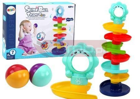 Zjeżdżalnia Tor Dla Kulek Spiralna Wieża Kolorowa Spiralna Wieża, która pełni funkcję zjeżdżalni dla kulek. Zapewni Twojemu maluchowi godziny niekończącej się zabawy i odkryć! Ten kolorowy zestaw składa się z 8 części o różnych kolorach, które zachęcają do kreatywnego układania i konstruowania. Głównym elementem tej wieży jest spiralna konstrukcja, która umożliwia puszczenie kulek z najwyższego poziomu i obserwowanie, jak toczą się po spirali, huśtając się delikatnie jedna po drugiej. To nie tylko fascynujące dla maluchów, ale także rozwija ich zmysł obserwacji i logicznego myślenia. Ale to jeszcze nie wszystko! Zestaw zawiera również 2 lekkie i łatwe do uchwycenia kulki w różnych kolorach, które podczas poruszania wydają delikatny dźwięk. To dodatkowa atrakcja, która zapewni dodatkową stymulację sensoryczną dla Twojego dziecka. Rozmiar kulek i elementów wieży został specjalnie dostosowany do małych rączek, co ułatwia manipulację nimi i pomaga w rozwijaniu koordynacji wzrokowo-ruchowej oraz precyzji ruchów. Na szczycie tej wspaniałej konstrukcji znajduje się uroczy niebieski lew, który dodaje jeszcze więcej uroku i zachęca do fantazyjnych opowieści podczas zabawy. To nie tylko zabawka, to narzędzie do nauki, rozwijania zdolności manualnych i kreatywności Twojego dziecka. Wymiary wieży: 50cm x 17cm x 17cm Wymiary opakowania: 33cm x 26cm x 9cm Posiada certyfikat CE, ponadto jest zgodny z normą EN71. Przeznaczony dla dzieci od 6 miesiąca życia.