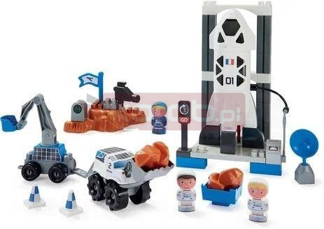 Baza kosmiczna z promem kosmicznym i platformą startową oraz łazikiem z naczepa do badania znalezisk kosmicznych. W zestawie dodatkowo 3 figurki astronautów.