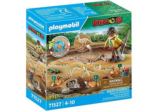 Wyrusz do świata dinozaurów z zestawem do zabawy Wykopalisko ze szkieletem dinozaura PLAYMOBIL. Wyposażony w pędzel, kilof, łopatę i wiadro, paleontolog bada szczątki tych olbrzymich gadów. Ostrożnie odkrywa jedną kość po drugiej. Radość z sensacyjnego znaleziska jest ogromna. Badaczowi udało się odnaleźć kompletny szkielet. Seria PLAYMOBIL Dinos zaprasza dzieci w wieku od 4 lat do wzięcia udziału w ciekawych przygodach z możliwością odgrywania ról i przeżycia fascynacji gigantycznymi jaszczurami w domu.