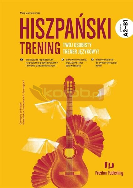 Chcesz ćwiczyć język hiszpański na poziomie podstawowym+ i średnio zaawansowanym? Zależy Ci na opanowaniu gramatyki i poszerzeniu zakresu słownictwa? Oto Twój nowy, osobisty trener językowy! "Hiszpański. Trening A2-B2" to nowatorska książka, która pomoże Ci w ocenie Twoich umiejętności, wytłumaczy kwestie gramatyczne i zadba o Twój rozwój językowy - krok po kroku. Materiał został opracowany zgodnie z zasadami prawidłowego treningu: Rozgrzewka: zapoznajesz się z teorią i przykładami. Trening właściwy: wykonujesz ćwiczenia - od najprostszych do bardziej zaawansowanych. Ćwiczenia relaksująco-utrwalające: rozwiązujesz krzyżówkę językową z użyciem słówek zawartych w poszczególnych rozdziałach. Zakres materiału obejmuje takie zagadnienia jak: czasowniki ser i estar; czas teraźniejszy presente de indicativo - użycie i odmiana czasowników regularnych oraz nieregularnych; czasy przeszłe pretrito indefinido i pretrito imperfecto - czasowniki regularne i nieregularne; czas przyszły futuro imperfecto; tryb rozkazujący imperativo; konstrukcje z bezokolicznikiem oraz formą gerundio; dopełnienie bliższe i dalsze; i wiele innych! "Hiszpański. Trening A2-B2" uzupełnia drugą część bestsellerowej serii "Hiszpański w tłumaczeniach. Gramatyka 2". To idealny wybór dla wszystkich samouków, którzy kontynuują naukę języka hiszpańskiego lub chcą sobie przypomnieć poznane już konstrukcje. Książka doskonale sprawdzi się też jako materiał do nauki w szkole lub na kursach językowych. Dzięki podręcznikowi: utrwalisz hiszpańską gramatykę na poziomie podstawowym+ i średnio zaawansowanym (A2-B1); sprawdzisz swoją wiedzę i wyeliminujesz typowe błędy; nauczysz się setek nowych słów, wyrażeń i zwrotów; sprawdzisz swoje umiejętności, pracując z kluczem odpowiedzi.