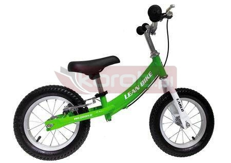 Rowerek biegowy CARLO Zielony Biegówka CARLO to fantastyczny pojazd przeznaczony dla każdego malucha. Dzięki niemu dziecko w szybszy i sprawniejszy sposób uczy się jazdy na rowerze z pedałami, ćwicząc przy tym samodzielne utrzymywanie równowagi. Zastanawiasz się, czym wyróżnia się rower typu biegówka? Wybierz prezentowany model w kolorze zielonym i sprawdź to razem ze swą pociechą. Jazda na rowerku biegowym już od pierwszych lat życia bardzo pozytywnie oddziałuje na rozwój dziecka. Poprawia jego kondycję i wytrzymałość, uczy orientacji w terenie i szacowania odległości czy prędkości. Prosta, klasyczna konstrukcja roweru nie będzie rozpraszać uwagi dziecka, pozwalając mu skoncentrować się na jednej czynności, jaką jest spokojny, naprzemienny ruch nóżek. Budowa tej biegówki bardzo pozytywnie wpływa na rozwój dziecka: wyrabia w nim nawyk prostej postawy, równocześnie pomagając w utrzymaniu równowagi. Jest również rewelacyjną pomocą ułatwiającą przejście na klasyczny rowerek. Zielony sprzęt dla malucha został wykonany z atestowanych, bezpiecznych materiałów najwyższej jakości, przy czym zwrócono szczególną uwagę na wykończenie oraz detale. Prezentowana biegówka odznacza się pompowanymi kołami, które znacznie poprawiają komfort jazdy oraz miękkim, regulowanym siodełkiem. W konstrukcji pojazdu dużą wagę przywiązano do wygody użytkowania - odpowiada za niego wytrzymała, metalowa rama, hamulec oraz możliwość dopasowania wysokości kierownicy i siodełka poprzez regulację. Zielony rowerek biegowy CARLO spodoba się zarówno chłopcom, jak i dziewczynkom. Będzie frajdą nie tylko dla młodego właściciela, ale i jego opiekunów - taki sprzęt pozwoli na organizowanie dłuższych i ciekawszych spacerów. Rowerek dla malucha jest prosty w montażu i demontażu, dlatego można zabrać go ze sobą wszędzie, by maluch mógł stale ćwiczyć i rozwijać swe umiejętności. Fantastyczna biegówka dla kilkulatków zapakowana jest w kartonowe opakowanie, co znacznie ułatwia jej transport. Wymiary zielonego rowerka biegowego: - biegówka: 94 cm x 13 cm, - średnica koła: 29 cm, - kierownica: 42 cm, - siodełko 21 cm x 14 cm, - odległość od siedziska do ziemi (z regulacją): 35 cm - 45 cm, - odległość od kierownicy do ziemi (z regulacją): 59 cm - 63 cm. Wymiary opakowania: 71 cm x 14 cm x 32 cm. Waga: 6 kg.