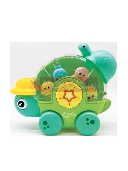 Kąpiel i zabawa to super sprawa! A gdyby połączyć jedno z drugim? Wesoły żółwik i jego zakręcona ekipa rozweselą maluszka, umilając przy tym czas kąpieli! Zabawka wyposażona została w aż 3 przyssawki, dzięki czemu bez trudu można ją przymocować do ścianki wanny. W zabawce ukryły się niespodzianki. Nabierz wody do kubeczka w kształcie mini żółwika, a następnie wlej ją do kapelusza na głowie dużego żółwia, aby zakręcił oczami! Wlanie wody w otwór na grzbiecie żółwia, wprawi w ruch karuzelkę. Gwiazdka znajdująca się na środku karuzeli jest piszczałką naciskaj ją, a wyda wesoły odgłos. To jeszcze nie wszystko! Żółwik zmieni się raz-dwa z wodnego w lądowego, gdy tylko wyjmiesz go z kąpieli, dobrze osuszysz i postawisz na podłodze. Za sprawą swobodnego ruchu kół, gdy go popchniesz, posłusznie pojedzie przed siebie.