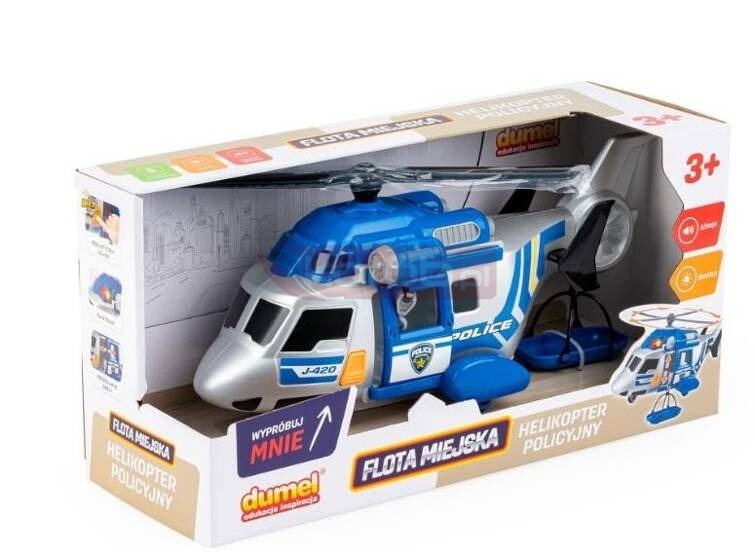 Wciel się w rolę pilota helikoptera i wyrusz na policyjny patrol! Pojazd wyposażony został w ruchome, przesuwane drzwi i ręcznie opuszczaną szalupę ratunkową. Na małych stróżów prawa czekają tu też realistyczne odgłosy, a także światełko. Śmigła helikoptera można ręcznie obracać, co zaangażuje dzieci do zabawy i pozwoli im rozwijać wyobraźnię, poprzez odgrywanie scenek z udziałem pojazdu.