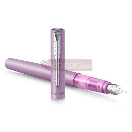 Parker pióro wieczne Vector XL Stalówka M | Metaliczny lakier w kolorze liliowym na mosiężnym korpusie z chromowanym wykończeniem | Stalówka M i niebieski atrament | Opakowanie prezentowe.