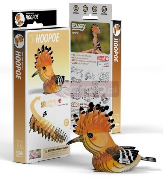 Eugy zaprojektowane w Nowej Zelandii są wykonane z przyjaznego dla środowiska kartonu pochodzącego z recyklingu i farby na bazie ryżu. Zestaw zawiera 30 ponumerowanych elementów układanki, oczka, nietoksyczny klej oraz instrukcję do zbudowania figurki ptaka dudka. Zbierz całą serię zwierząt, ptaków, dinozaurów i wiele innych. Dla dzieci w wieku 6 lat +.