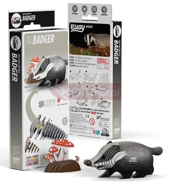 Eugy zaprojektowane w Nowej Zelandii są wykonane z przyjaznego dla środowiska kartonu pochodzącego z recyklingu i farby na bazie ryżu. Zestaw zawiera 35 ponumerowanych elementów układanki, oczka, nietoksyczny klej oraz instrukcję do zbudowania figurki borsuka. Zbierz całą serię zwierząt, ptaków, dinozaurów i wiele innych. Dla dzieci w wieku 6 lat +.