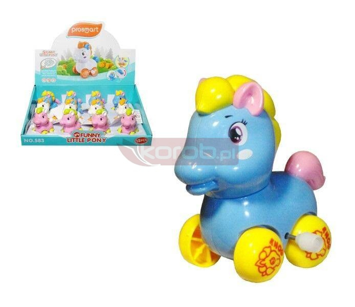 Uroczy konik do nakręcania. Po nakręceniu porusza się do przodu, porusza głową oraz macha ogonkiem. Produkt dostępny w kilku wersjach kolorystycznych, wybierany losowo. Cena dotyczy jednej sztuki. Zabawka przeznaczona dla dzieci od 3 lat.