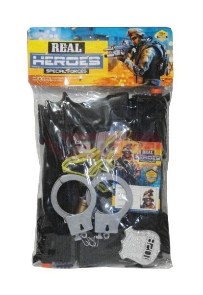 Zestaw dla małego policjanta. W zestawie znajdują się m. in: 2 pistolety, krótkofalówka, legitymacja, kajdanki i odznaka. Produkt zapakowany w przezroczysty worek. Zabawka dla dzieci od 3 lat. Podane wymiary są wymiarami opakowania.