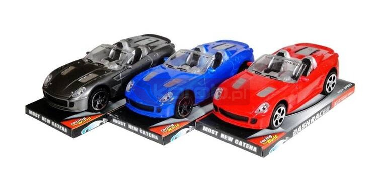 Plastikowy samochód z napędem. Produkt występuje w kilku wersjach kolorystycznych, wybierany losowo. Cena dotyczy jednej sztuki. Zabawka dla dzieci od 3 lat. Podane wymiary stanowią wymiar opakowania. Zabawka zapakowana w kartonową podstawkę z przezroczystym kloszem.