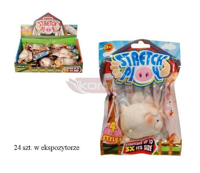 Urocza, gumowa świnka do rozciągania. Zobacz jak bardzo może się rozciągnąć. Rozciąga się do 3x swojego rozmiaru. Produkt występuje w kilku wersjach, wybierany losowo. Cena dotyczy jednej sztuki. Zabawka dla dzieci od 3 lat. Produkt zapakowany w plastikowy worek. Podane wymiary są wymiarami produktu w opakowaniu.