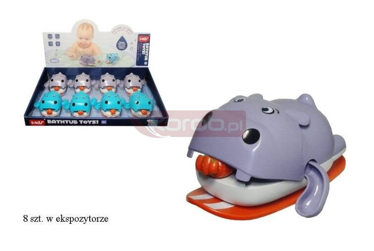 Zwierzątko hipopotam pływający na desce. Z jego pyska wystaje marchewka, którą należy pociągnąć wtedy zwierzątko zaczyna machać rękami, co będzie sprawiać, że będzie poruszać się w wodzie. Produkt dostępny w kilku wersjach kolorystycznych, wybierany losowo. Cena dotyczy jednej sztuki. Zabawka przeznaczona dla dzieci od 3 lat.