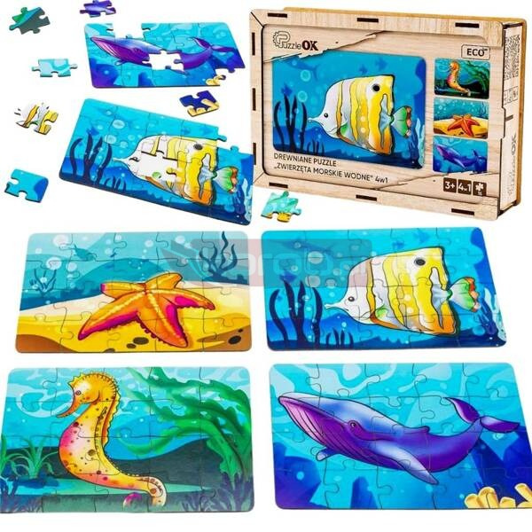 Bezpieczne materiały: zabawka wykonana jest z ekologicznych materiałów, które pozbawione są szkodliwych substancji. Rysunki malowane na puzzlach są bezpiecznymi farbami, odporne na ścieranie i nietoksyczne, co gwarantuje bezpieczną zabawę dla najmłodszych użytkowników.