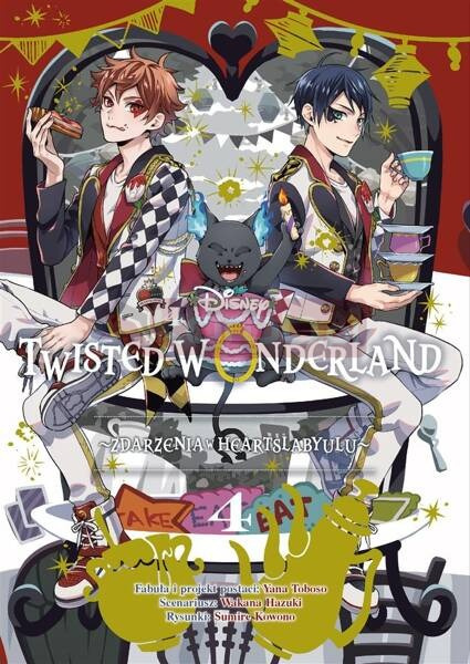 Manga czytana od prawej do lewej. Czwarty tom mangi o niezwykłych przygodach nastolatka w magicznym świecie o nazwie Twisted Wonderland. Komiksowa wersja niezmiernie popularnej gry mobilnej "Disney Twisted-Wonderland", stworzona przez ludzi, którzy przygotowali tę grę. Uczeń szkoły średniej - Yu - stawia czoło kolejnym zadziwiającym wyzwaniom w niezwykłym świecie Twisted Wonderland, do którego trafił w tajemniczych okolicznościach i został przyjęty do akademii magii, Night Raven College. Riddle, przewodniczący domu Heartslabyul, pozwala swoim emocjom i magii wymknąć się spod kontroli i ulega przeplamieniu! Yu dołącza do Grimma, Ace'a, Deuce'a, Treya i Catera, żeby zmierzyć się z Riddle'em, ale Jak to się wszystko zakończy? Finał będzie zaskakujący.