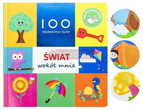 To tętniąca kolorami książka, w której najmłodsi znajdą 100 pierwszych słów. Mnóstwo zabawy zapewnią elementy sensoryczne znajdujące się na każdej rozkładówce: materiały o różnych strukturach, mięciutkie futerka, mieniące się brokaty, wycięte kształty.