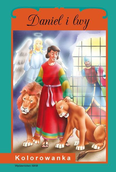 Kolorowanka opowiada biblijną historię Daniela, któremu Bóg uratował życie w jaskini pełnej lwów.