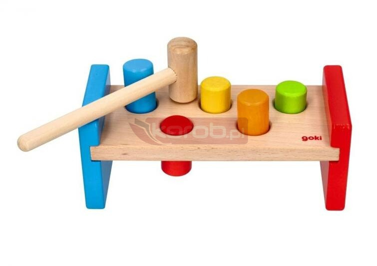 Drewniana ławeczka do wbijania kołków z młotkiem marki Goki to klasyczna zabawka, która rozwija koordynację ruchową i zdolności manualne u dzieci. Ławeczka ma wymiary 21 x 8,8 x 8,5 cm i wykonana jest z drewna. W zestawie znajduje się 5 kolorowych kołków do wbijania. Ta interaktywna zabawka zachęca dzieci do precyzyjnego uderzania młotkiem, co nie tylko rozwija ich zdolności motoryczne, ale także uczy cierpliwości i koncentracji. To doskonała zabawka, która zapewnia godziny kreatywnej i edukacyjnej zabawy.