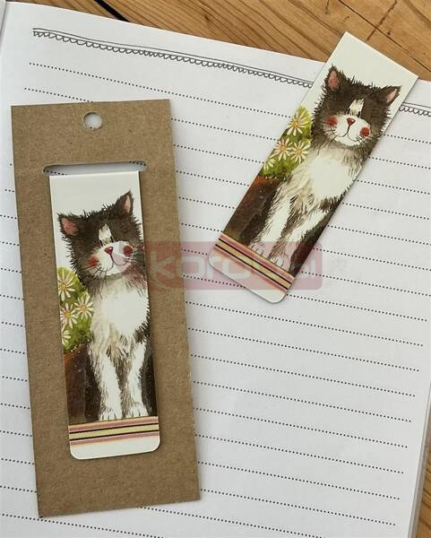 Magnetyczna zakładka do książki zapakowana w blister.