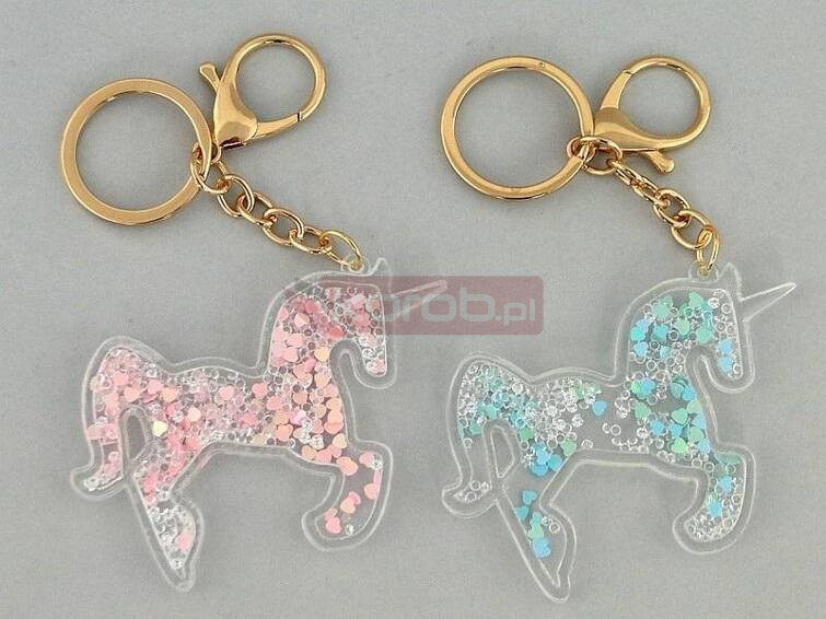 Brelok przeroczysty - jednorożec dł.8cm, z ozdobnymi kamieniami