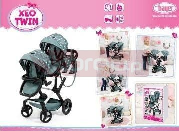 Ten nowoczesny podwójny wózek dla lalek jest odpowiedni dla lalek o wzroscie do 46 cm. Wózek posiada regulowane daszki przeciwsloneczne oraz regulowana wysokosc raczki do pchania, dzieki czemu mozna go optymalnie dopasowac do wielkosci dziecka. Siedziska wózka blizniaczego mozna zamocowac indywidualnie zwrócone w strone dziecka lub w kierunku jazdy, dzieki czemu lalki moga tez np. patrzec na siebie. Ponadto mozliwe jest takie ustawienie siedzen, ze sa one ustawione prosto za soba lub jedno siedzenie jest ustawione dalej w dól, a drugie dalej w góre. Dzieki zintegrowanemu koszowi na zakupy mozna schowac wszystko, co jest potrzebne na wycieczke z lalkami. Blizniaczy wózek dla lalek oferuje równiez mozliwosc dolaczenia fotelika samochodowego dla lalek EasyGo (brak w Handle height (cm): 58-71, Measurements (cm): 80 x 35 x 76,5