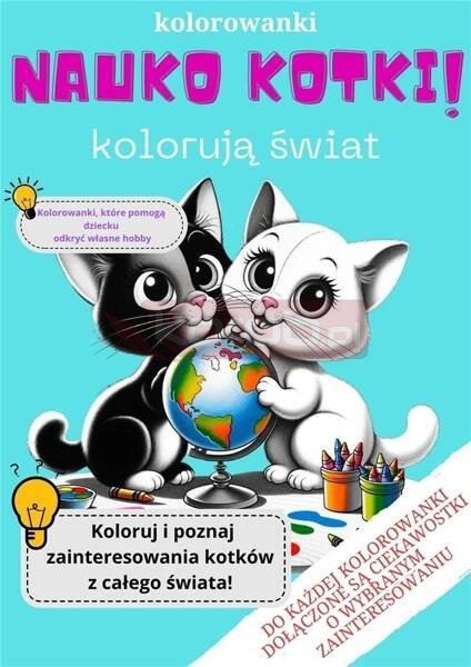 "Zapraszamy do fascynującej podróży przez świat różnorodnych hobby z naszymi kolorowankami z serii ""Nauko Kotki!"". Te wyjątkowe kolorowanki to więcej niż zwykła zabawa to narzędzie, które bawi, uczy i inspiruje. Odkryj z Twoim dzieckiem dziedziny od programowania po astronomię i wspieraj je w odkrywaniu własnych pasji.