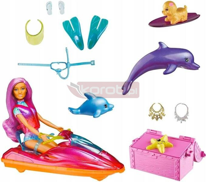 LALKA BARBIE DREAMTOPIA zestaw lalka i skuter wodny, piesek, delfinki HBW90